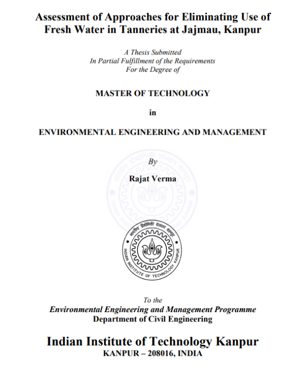 M Tech Thesis: Assessment of Approach for Eliminating Use of Fresh Water in Tanneries at Jajmau, Kanpur.